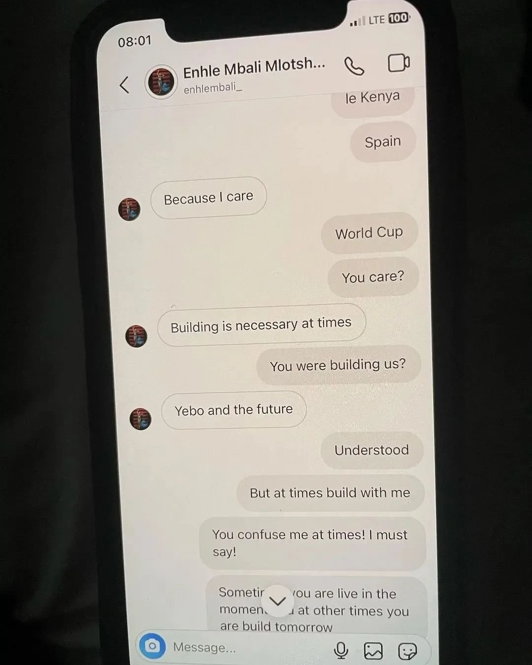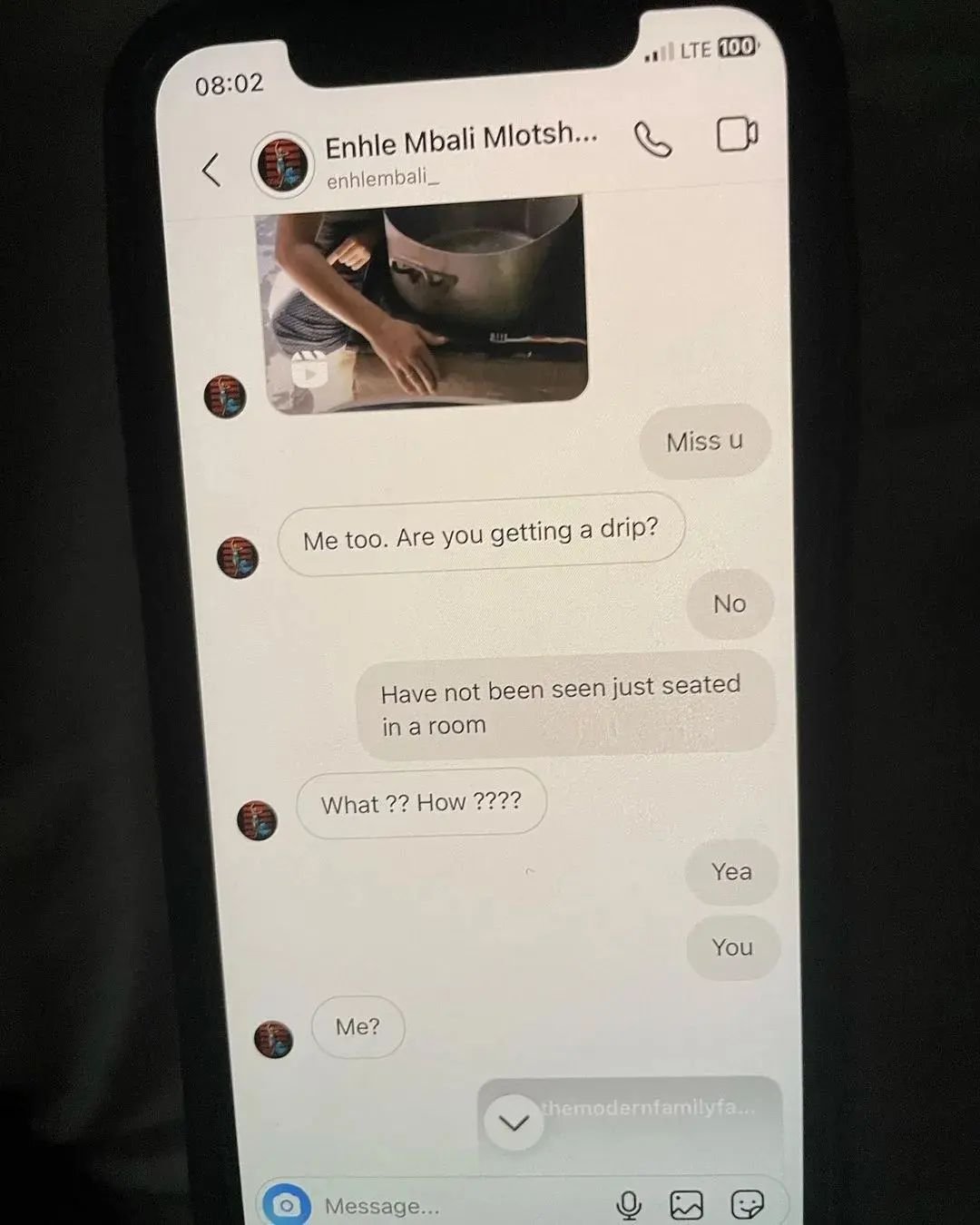 Valentine posted a series of screenshots of a conversation between her husband Justice Huni with Enhle Mbali.