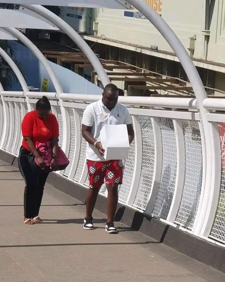 A few weeks ago Shadaya was seen walking across the footbridge with a cake in one hand while, someone captured him without knowing and it became viral.