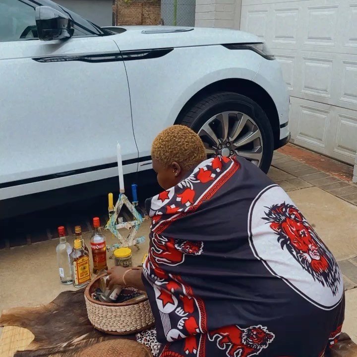 The traditional healer shared photos of the white range rover parked in her compound, expressing excitement as she buys herself a new car. Maweni performed rites on the car as seen in the video and photo.