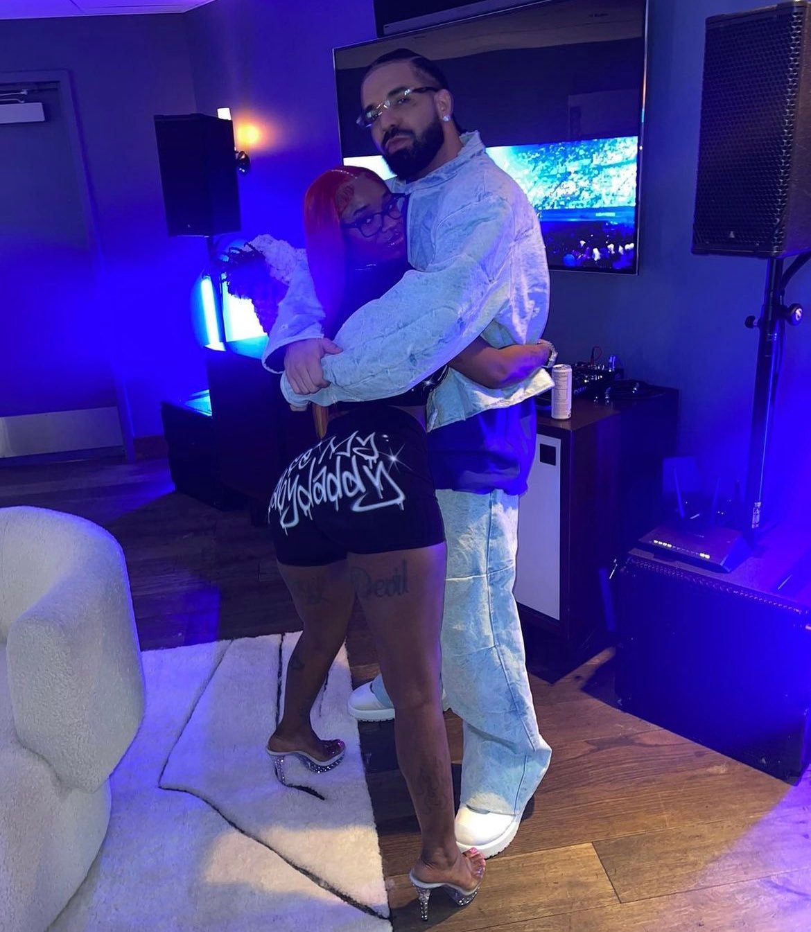 Drake and Sexyy Red have gotten very close! The “Pound Town” rapper posted a photo of herself cozying up to Champagne Papi himself on Twitter and Instagram on Wednesday, Aug. 16, 2023. In the first photo, the two rappers were hugging tight, and in the second shot, red was still cozying up to Drake, but flipping off the camera.