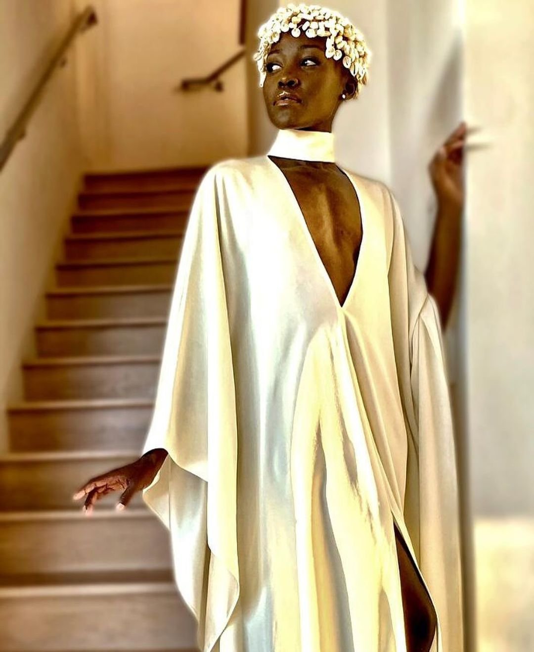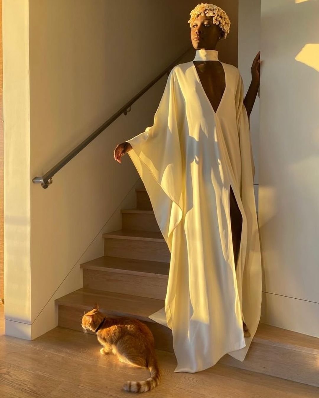 Nyong’o also shared additional images, including one of her and Yoyo snuggling, one of the cat lounging on a chair, and a golden-hued shot capturing Nyong’o posing in a glamorous dress with her pet on the floor in front of her.
