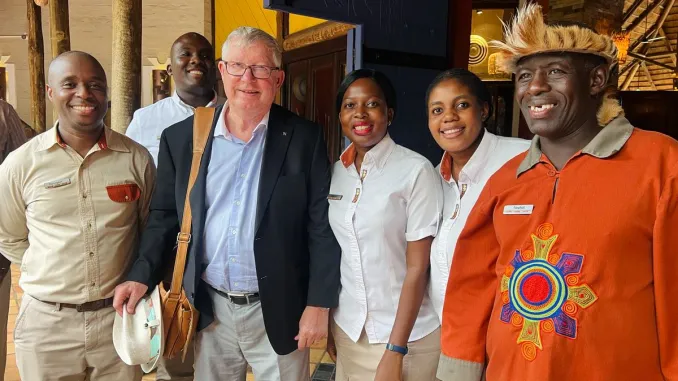 Sir Alex Ferguson, who led Manchester United to an astonishing 38 trophies during his 26-year tenure, was photographed at the luxurious Victoria Falls Safari Lodge. The prestigious establishment, known for its stunning views of the Zambezi National Park and its commitment to offering an authentic African experience, became the perfect backdrop for Ferguson’s latest adventure. Staff at the lodge were thrilled to meet the football legend, with many taking the opportunity to snap photos with him as he graciously engaged with employees and guests alike.